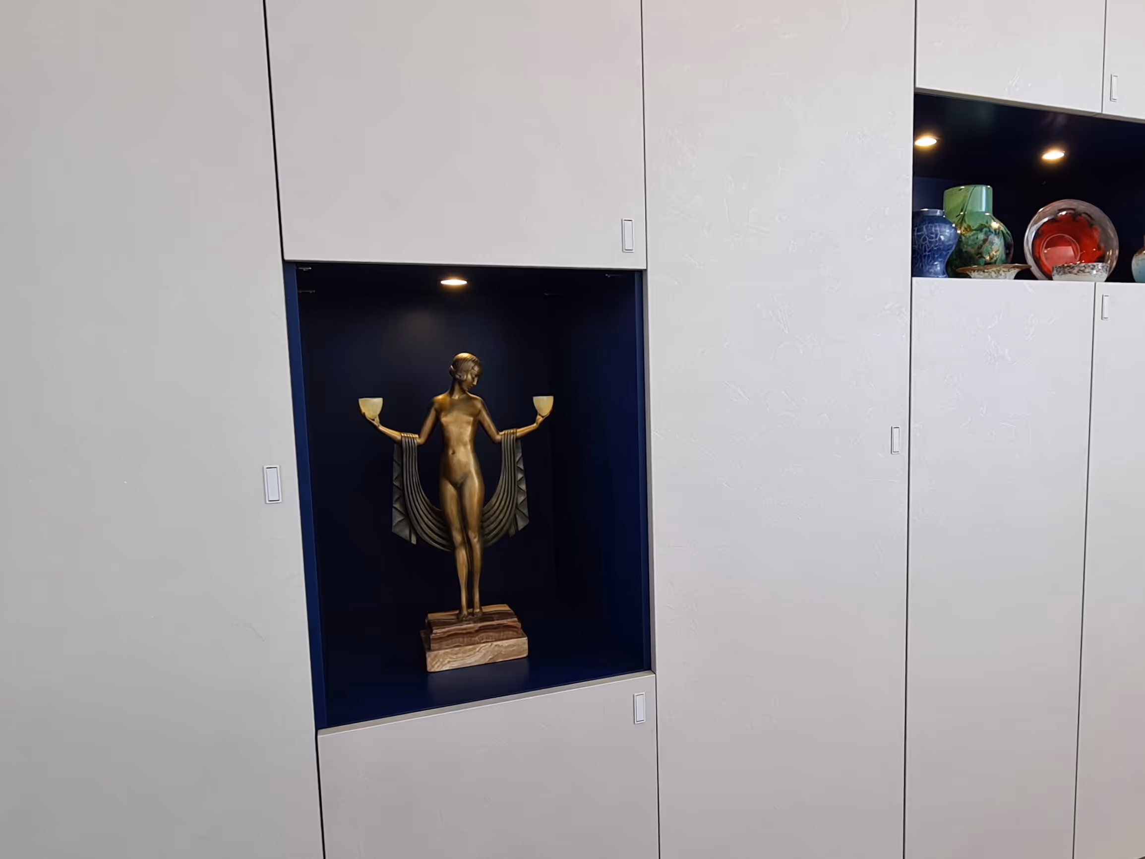 For this Guest Bedroom, our client required more than just a standard run of wardrobes. Novamobili has in its portfolio an array of modern options to achieve this. The wardrobe set still offers full and double-height clothes hanging, but the illuminated recesses allow for showcasing some of their beautiful Objet d’art.